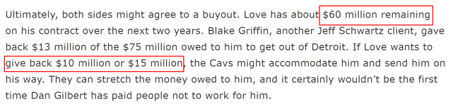 格里芬当时放弃了余下7500万美元薪水中的1300万。洛伊德认为,如果乐福愿意放弃1000万美元或者1500万美元,骑士应该会乐意和他达成买断协议,让他拥有自由择队的机会。