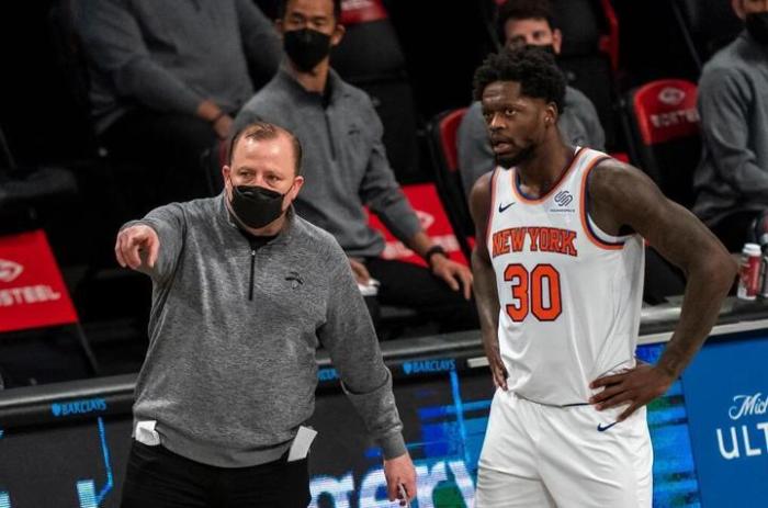 功臣是锡伯杜,他带来了强悍的防守体系和赢球文化,让队内的每名球员提升自信心!另外核心兰德尔进步神速,有望拿下最快进步球员,赛季场均24分10.5篮板6助攻,三分命中率高达41.6%。球队看起来星味不足,但是攻防两端很强硬,常规赛几次交手篮网虽然都输了,但比赛很胶着,都是到最后时刻才分出胜负!