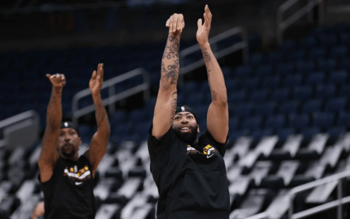 360直播吧讯 北京时间4月27日,湖人客场对阵魔术,赛前,湖人主帅沃格尔接受了媒体采访,谈到了浓眉、詹姆斯等人的状况。复出后的两场比赛,浓眉都有限时令,但今天这一限制将解除,至于詹姆斯,沃格尔表示这位36岁球星仍处于“无限期休战(out indefinitely)”的状态。