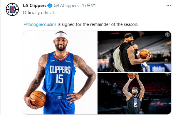 今年2月份,考辛斯被火箭裁掉,失业一个多月,然后考辛斯和快船签下第一份十天合同,凭借自己的表现赢得第二份十天短合同,现在考辛斯更是转正,和快船签下一份新合同,