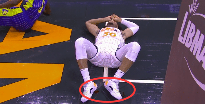 首节的比赛还剩下3分钟的时候,场上出现了十分揪心的一幕,步行者球员突破上篮,坎纳迪高高跳起想要完成封盖,在落地的时候,坎纳迪遭遇到了伤病打击,他十分痛苦地捂着自己的右腿倒在地上,同时还能明显地听到他在痛苦喊叫,几名队友想向前查看他的伤病情况,但是随后几个人都向后退去,并且有球员抱着头十分的沮丧,镜头拉近给到坎纳迪的时候,我们发现在他的腿下面的地板上,有很多的血,另一名队友班巴立刻脱掉了自己的球衣帮他盖住。
