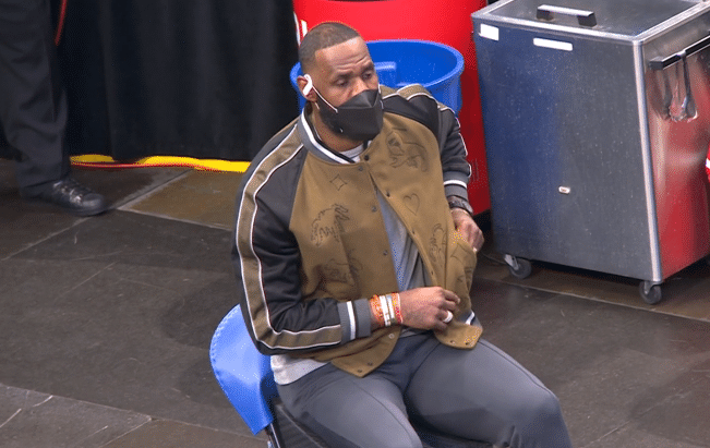 今天湖人对阵独行侠,詹姆斯又是坐在场边观战,镜头多次给到老詹,不过首节还没打完,詹姆斯扭头返回更衣室,可能是上厕所吧,因为没过多久,詹姆斯又回到场边。