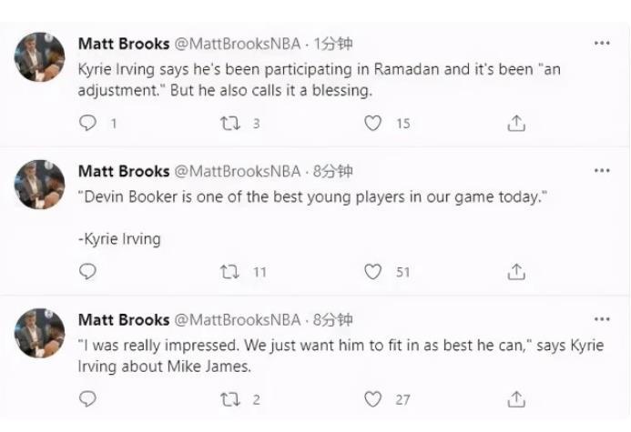 说完湖人,我们再来说说让人又爱又恨的“地平小王子”,最近欧文的状态有些下滑,欧文也给出了自己的解释,因为自己在参加斋月,所以在日出后,日落前是需要禁食的。