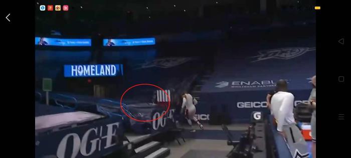 在球进之后,威少有如踩上风火轮,兴奋地跑回更衣室,值得一提的是,在威少启动的时候,一个红衣男子也是从另一侧和威少开始赛跑,不过虽然命中三分球,但是威少在这个速度之争中还是落后于这名红衣男子。