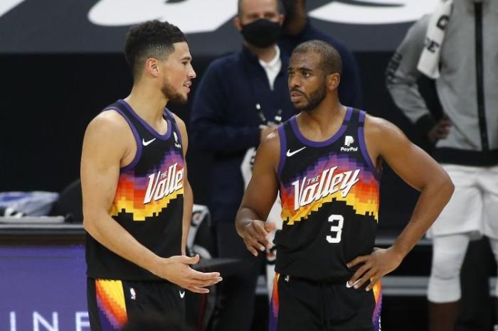 费城队,一个东部季后赛强队,太阳队,在保罗加盟之前,19-20赛季,太阳队的战绩是26胜39负,一支胜率只有40%,排行在季后赛大门外的球队。