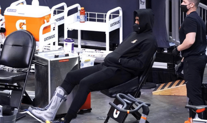 360直播吧讯 北京时间4月23日,湖人客场挑战独行侠,此役,领袖詹姆斯继续缺席,他的队友戴维斯将复出,不过,浓眉最多只会打15分钟。就在今天,关于老詹的3个消息传出。第一,詹姆斯的伤情又有新进展,他在独行侠主场训练大汗淋漓,看来已经可以进行高强度的运动了,刚开始的时候,老詹还要穿着保护靴;第二,据福布斯统计,詹姆斯今年将成为十亿富翁;NCAA新星去世,他刚刚签约詹姆斯的经纪公司,老詹发了一个表情,疑似悼念。