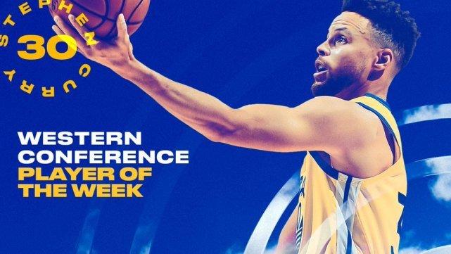 库里上周场均贡献43.8分5.8篮板5助攻,率领勇士打出3胜1负的战绩。这是库里本赛季第二次当选周最佳,也是他生涯第16次当选周最佳。