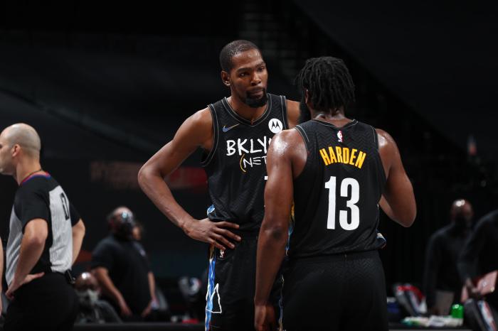 360直播吧讯 北京时间4月20日,篮网下一场对阵鹈鹕的伤情报告出炉,杜兰特(坐大腿挫伤)、哈登(腿筋拉伤)、丁威迪、齐奥萨(骨折)和泰勒-约翰逊(膝伤)五人都因伤缺席比赛,篮网伤病不断还有坏消息,两大年轻球员克拉克斯顿和雷吉-佩里违反防疫协议,被强制隔离也缺席比赛。