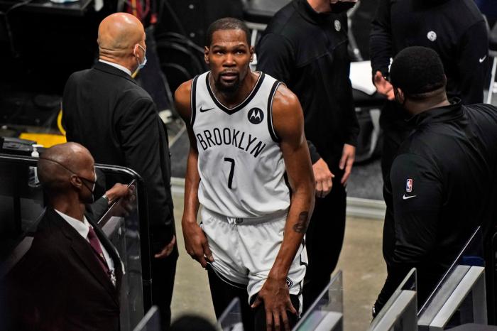上一场篮网惨遭热火绝杀,杜兰特仅仅只打4分钟却不幸撞伤大腿,因伤早早退出比赛,不过杜兰特很快就重返替补席;究竟杜兰特伤势如何?应该无大碍。