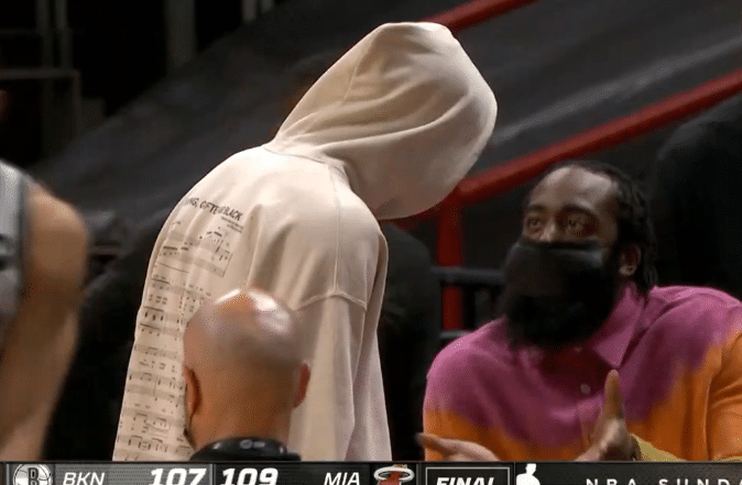 篮网惨遭绝杀后,镜头给到杜兰特和哈登,两人对话时哈登摊手,杜兰特戴着帽子与登哥沟通;本场比赛,杜兰特不幸撞伤大腿,仅打4分钟受伤退赛。