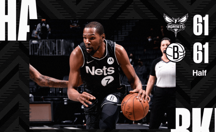 360直播吧讯 北京时间4月17日,篮网主场迎战黄蜂,杜兰特复出,哈登继续因伤缺席。在上半场的较量中,黄蜂外线三分神准,尤其是布里奇斯,个人状态神勇,半场11中8高效砍下20分6板,得分直接创生涯半场新高!而被临时安排进入先发的新秀凯瑞也没有辜负主帅信任贡献13分,罗齐尔则是送出10分6助攻!凭借这3人的出色表现,黄蜂在上半场和篮网打成61平!
