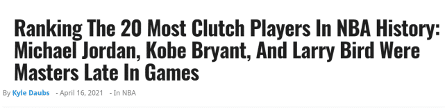 360直播吧讯 北京时间4月16日,美媒Fadeaway World(FW)评选NBA历史上的20大关键先生,乔丹无悬念排名第一,科比位居第二,詹姆斯排名第四。现役球员中,一共有6人出现在这份榜单上。