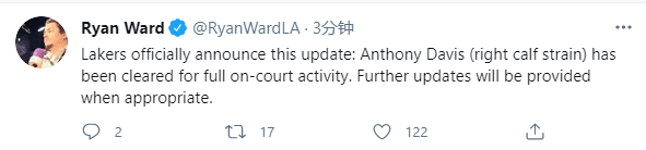 360直播吧讯湖人巨头终于要复仇了,湖人对阵凯尔特人赛前,沃格尔透露安东尼-戴维斯已经获得参加球场完整训练的许可,这意味着浓眉小腿伤势已经痊愈,虽然接下来几场比赛,浓眉不太可能出战,但这是浓眉复出的重大利好;湖人也已官宣这个喜讯。