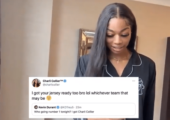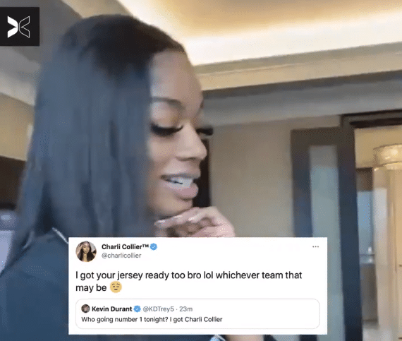 科利尔称不管自己的选秀顺位是第几名,也不管是哪支球队训中的自己,都会给杜兰特准备一件WNBA的球衣,希望杜兰特可以在球员通道的时候穿上。杜兰特也表示同意,没有问题。