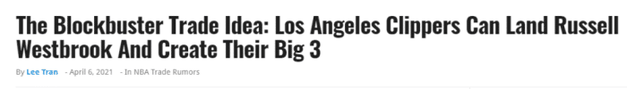 360直播吧4月13日讯 最近美国体育媒体《bleacherreport》专栏记者GREG SWARTZ不知喝了几瓶二锅头,又开始瞎吹,搞出了一套3方交易方案。