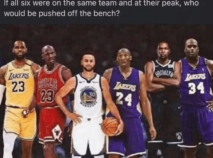360直播吧讯在NBA历史上,有很多伟大的球星,而对于一支球队来说,首发只能有5人。就拿梦八来说,强如韦德,保罗,德隆等伟大球星,也只能担任替补,不是他们不好,而是首发球员都太厉害了。就在近日,美媒发问,詹姆斯和乔丹,科比,库里,奥尼尔,杜兰特这6人如果在同一支球队,谁打替补?很显然,美媒这是在挑事情,找一些话题来吸引关注,不过,这套6人阵容,如果真要选出首发5人,还真的不是一件容易的事情。