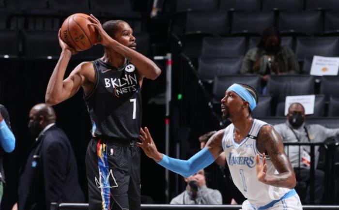 360直播吧讯北京时间4月11日 NBA常规赛,篮网主场101-126不敌湖人。这场比赛转折点就是欧文和施罗德双双被罚下,这样湖人队继续扩大领先优势,也宣告了篮网基本追分无望,在第四节基本成为了垃圾时间,但是这时候杜兰特依然在场上,本场比赛是杜兰特伤愈复出后的第2场比赛,他首发出战24分钟,17投8中,罚球5中5,拿到22分7篮板5助攻8失误。最后湖人队已经领先了20多分的时候,纳什主教练也没有将杜兰特换下,这一调整也备受球迷质疑,毕竟杜兰特刚刚伤愈复出,在比赛基本拿不回来的情况下,应该让杜兰特保休息,避免伤病。