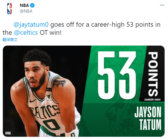 第一、23岁塔图姆成为凯尔特人队史最年轻50分先生。