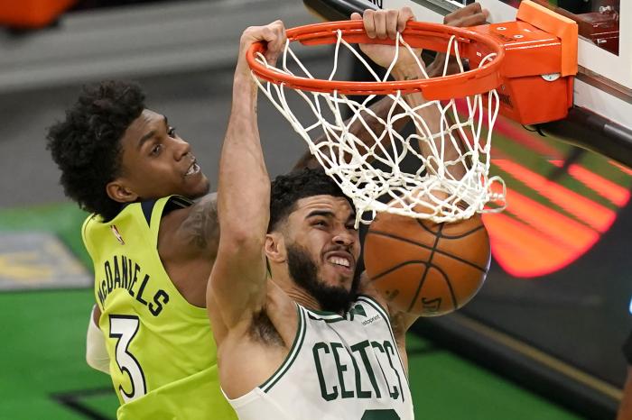 360直播吧4月10日讯 NBA疯狂纪录日来了;凯尔特人加时145-136击败森林狼,塔图姆出战40分钟25投16中、三分10中6轰下53分10篮板4助攻,轰下生涯得分新高,23岁塔图姆狂砍53+10狂刷历史纪录;公牛球星拉文狂砍50+创纪录,鹈鹕球星锡安37+15也刷爆纪录。