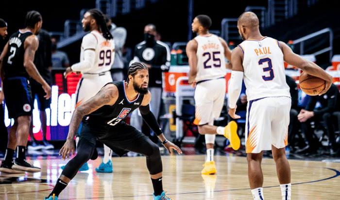 360直播吧讯今天NBA常规赛结束了一场焦点战,快船113-103击败太阳,取得3连胜的同时终结对手7连胜。这场比赛末节快船打出一波流扩大优势,成功拿下胜利。此役朗多和保罗相遇,两人堪称是NBA联盟最著名的死对头之一,而今天朗多砍下15分3篮板9助攻1抢断,保罗拿下13分7篮板3助攻1抢断。
