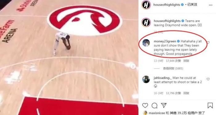 360直播吧讯北京时间4月8日,有美国媒体在社交媒体上上传勇士球员追梦格林的视频。视频显示格林被对手放空却选择传球。结果,追梦格林本人在社交媒体下方评论:“你们确定不展示下他们放空我付出的代价?”