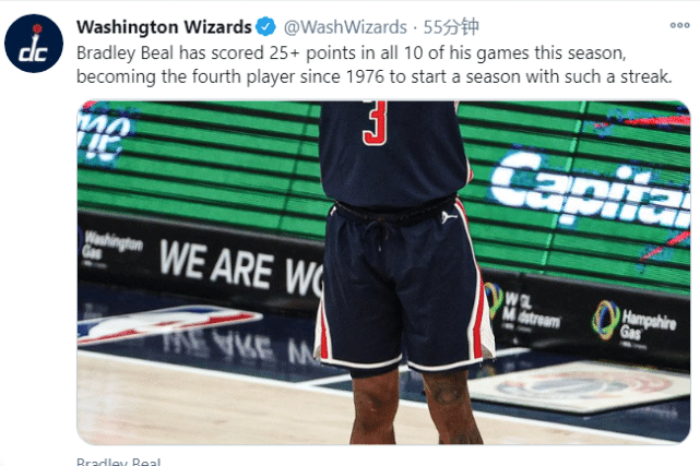 根据统计,比尔在开季10场自己出战的比赛中,全部轰下了25+的得分。这让他成为1976年以来第4位做到这一点的球员。这10场比赛中,比尔最低得分是北京时间1月4日对阵篮网时得到的27分。10场比赛中,比尔4次轰下30+,1次轰下40+,1次轰下60+。在目前的东部,比尔毫无疑问是头号得分后卫。