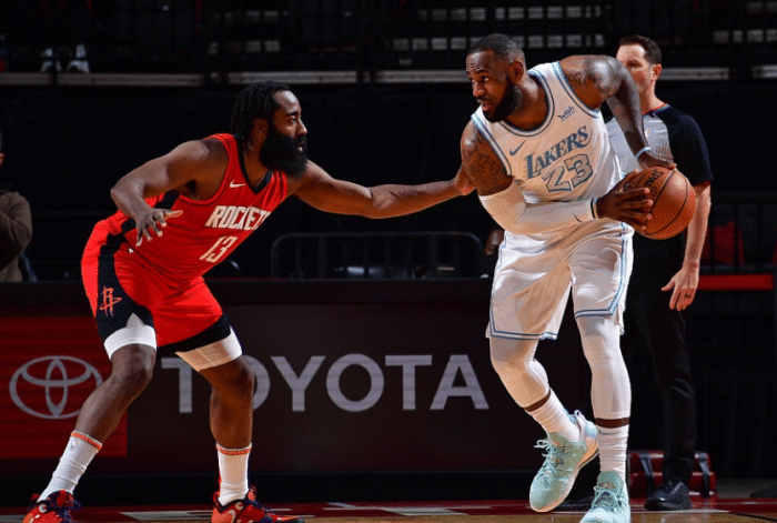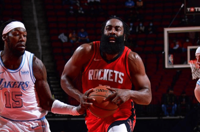 事实上,哈登在过去4场比赛中,个人的出手数字都在17次以下,过去3场出手数分别是14、13、14。上一场对阵魔术,哈登更是出现了罕见的0罚球。一开始,球迷猜测这和哈登的脚踝伤势有关。但从此役对阵湖人的情况来看,这应该和火箭的战术布置有关。