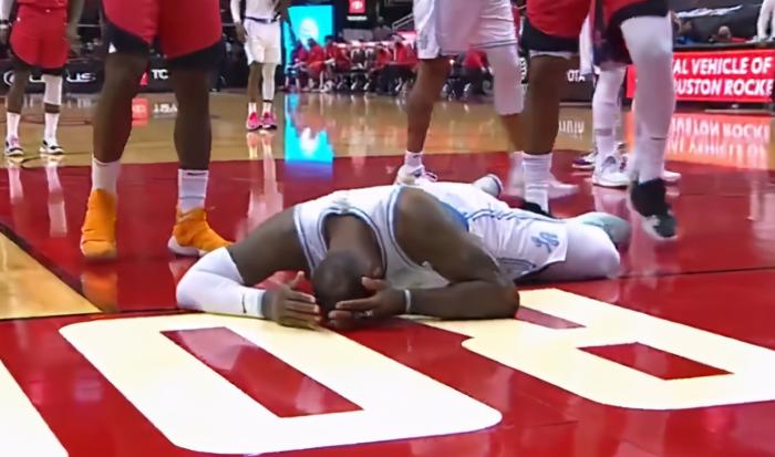 第二节的比赛开始后,湖人一波13:7的小高潮过后,湖人再次将分差扩大到了10分,但是这一节的比赛开始了仅仅2分钟的时间,考辛斯也是被驱逐出场了,詹姆斯后场接球一条龙杀到篮下上篮,但是在上篮的过程中,考辛斯切球的时候直接切到了詹姆斯的头部,詹姆斯十分痛苦的倒在了地上,这个动作看着就很疼,结结实实的打在了詹姆斯的头上,裁判在经过录像回放后吹罚了考辛斯二级恶意犯规直接被驱逐。第一节比赛还剩下2分15秒到第二节打了1分16秒,不到4分钟的时间两队2人被驱逐。