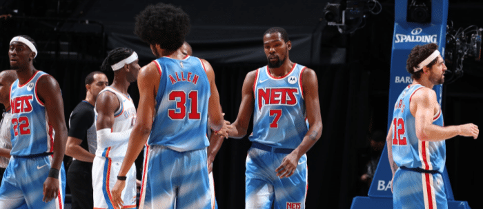 这支篮网的进攻没有任何体系可言,战术就是球星单打,防守端更是一塌糊涂,进攻垫底的球队在遇到篮网时,往往有如神助,比如说老鹰、雷霆。