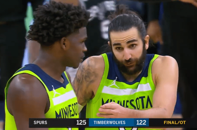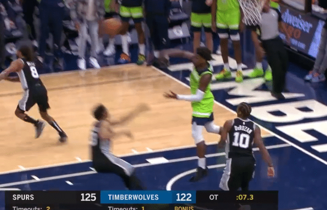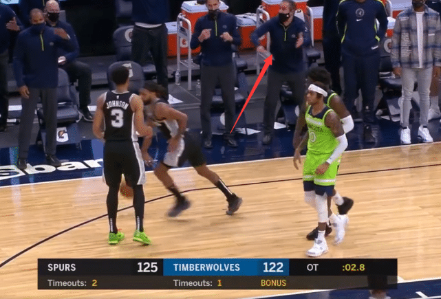 首先将画面回到加时最后时刻,凭借德罗赞的出色发挥,马刺建立了6分的领先优势。不过马利克·比斯利神兵天降投进三分,分差只剩下3分。此时马刺仍握有球权,但森林狼也还有最后一攻机会。德罗赞中投不中,唐斯抢下篮板随后交给卢比奥。卢比奥迅速上球给前场的爱德华兹。