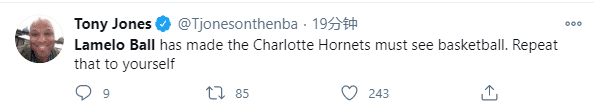 19岁三球一战创造历史,不仅成为黄蜂队史最年轻三双球员,而且成为NBA历史最年轻三双球员,黄蜂老板乔丹终于选对人了吗?这么多年他的选人眼光备受质疑,不久前爵士记者发推三球让黄蜂看到了希望。