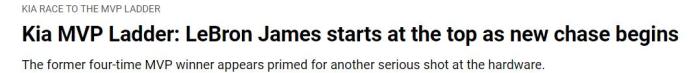 360直播吧讯:北京时间1月9日,NBA新赛季已经进行了半个月的时间,官方在今天也公布了本赛季第一期的MVP榜单。其中,湖人主将詹姆斯高居榜首,东契奇排在第二,乔治排在第三。具体详情如下: