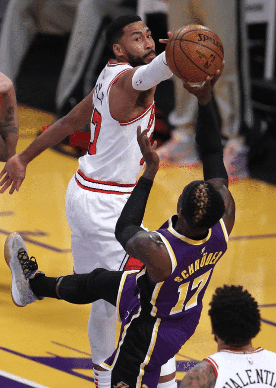 虽然是赢球了,但不得不说湖人打得不是很好,包括之前打马刺、灰熊也是如此,面对实力不强的球队湖人也展现不出太大的压倒性优势,新援还在磨合当中,球队的攻防表现都能更好!今日这场球双方鏖战到了最后4.7秒公牛落后1分,湖人队詹姆斯发边线球,直接扔给了施罗德,小黑拿球就跑,身后的赛迪斯-杨一路狂追,还被小黑一个闪躲给甩掉了,最后公牛再次杀出一人才成功犯规,可是时间只剩下了0.5秒。