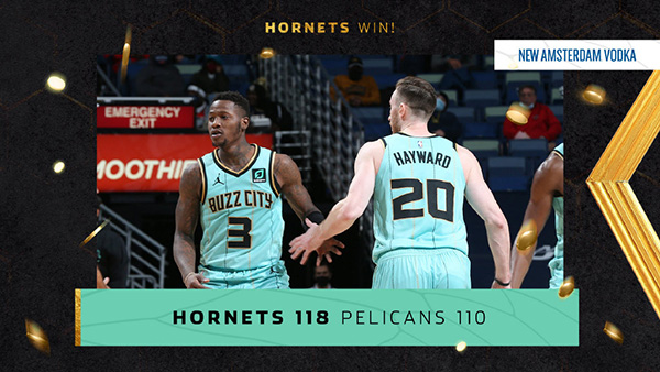 黄蜂118-110险胜鹈鹕 海沃德26+7 锡安26+8