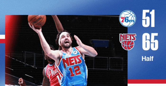 360直播吧1月8日讯 北京时间1月8日,篮网主场迎战76人,杜兰特继续隔离,欧文也因为个人原因缺席,加上丁威迪此前赛季报销,相当于篮网三大核心今天都打不了,这对于战绩排在联盟第一的76人来说无疑是一个绝佳的连胜机会。但让人没有想到的是,布鲁克林在上半场反倒领先了14分之多!