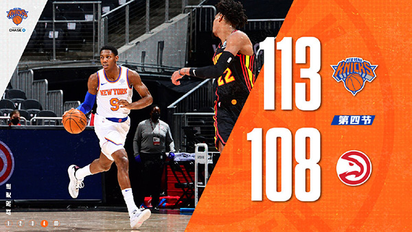 360直播吧讯:北京时间2021年1月5日消息,在一度落后15分的劣势下,纽约尼克斯队客场最终以113-108逆转亚特兰大老鹰队,尼克斯迎来2连胜。