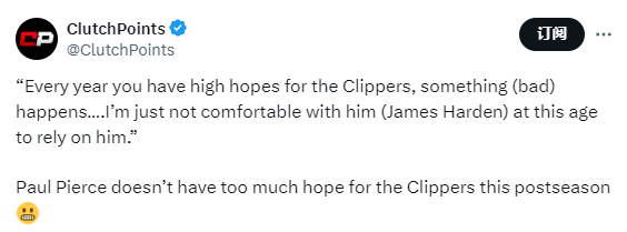 360直播吧讯 北京时间4月20日,NBA官方宣布罚单,洛杉矶快船队因违反联盟伤病报告规则被罚款2.5万美元;ESPN专家预测看好独行侠晋级,皮尔斯预测快船出局,他的理由是小卡伤停且担心哈登靠不住。