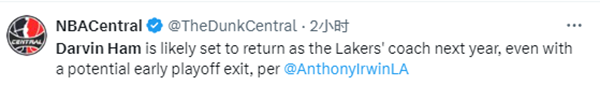360直播吧讯 北京时间4月23日,据湖人记者Anthony Irwin报道,即使球队在季后赛首轮提前出局,哈姆仍很可能在下赛季继续执教湖人队。