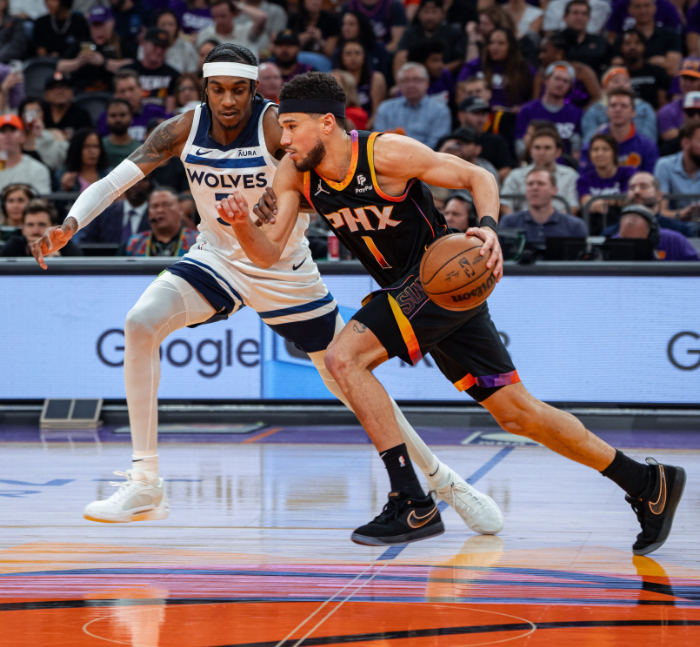 末节太阳被反超,布克连得5分夺回主动权,随后爱德华兹带队10-2反超比分,太阳继续抵抗,奥科吉命中三分扳平比分,爱德华兹和麦克丹尼尔斯连中三分,布克两罚全中,杜兰特封盖康利,比尔传球失误,爱德华兹霸气隔扣杜兰特打停比赛。