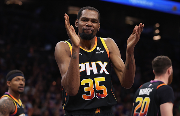 暂停回来,比尔再次失误而且犯满毕业,爱德华兹崴脚仍忍痛坚持比赛,布克2分续命,康利造犯规撞到主帅芬奇,后者被搀扶离场;杜兰特传球失误,布克两罚续命,华子扣篮杀死比赛,最终太阳输掉生死战,杜兰特和布克尽力了,比尔坑惨了球队。
