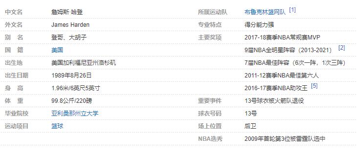 詹姆斯·哈登(James Harden),1989年8月26日出生于美国加利福尼亚州洛杉矶(Los Angeles, California),美国职业篮球运动员,司职后卫,效力于NBA布鲁克林