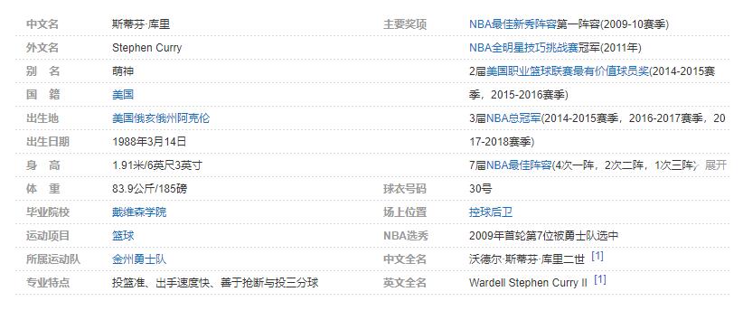 斯蒂芬-库里个人详细资料简介: