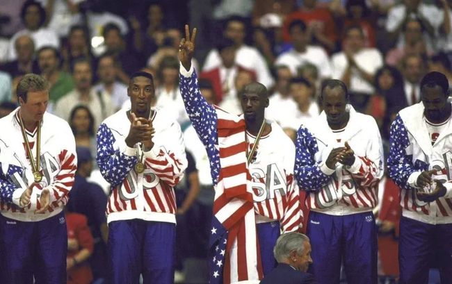乔丹跟随国家队参加过1984年洛杉矶奥运会和1992年巴塞罗那奥运会,两次均以全胜战绩夺取金牌。