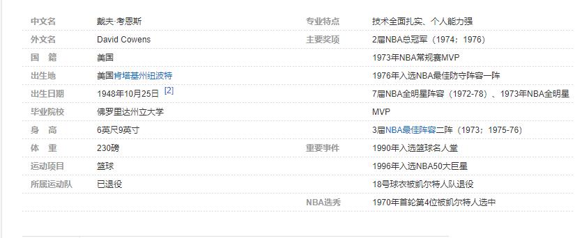 戴夫·考恩斯(David Cowens),1948年10月25日出生于美国肯塔基州纽波特,前美国职业篮球运动员,司职中锋/大前锋 。