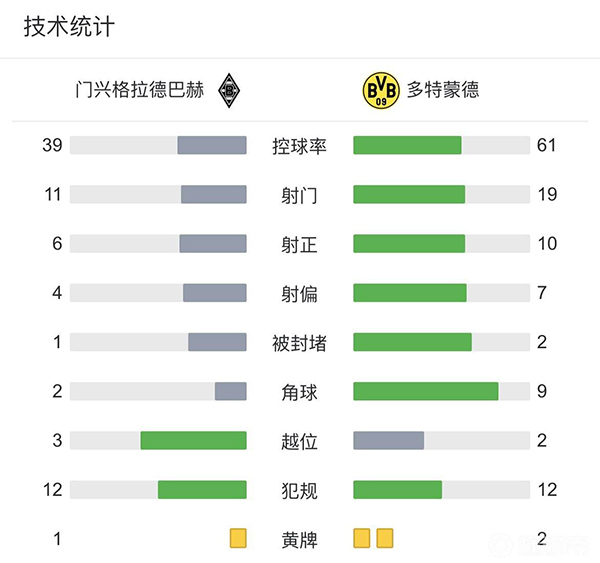 全场比赛结束,最终门兴4-2多特蒙德。