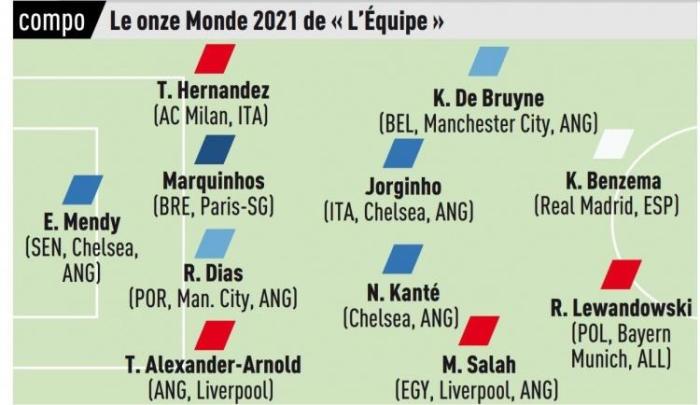 360直播吧01月05日讯 ,《队报》评选了2021年最佳阵容,其中本泽马、莱万搭档双前锋,梅西、C罗无缘入选。