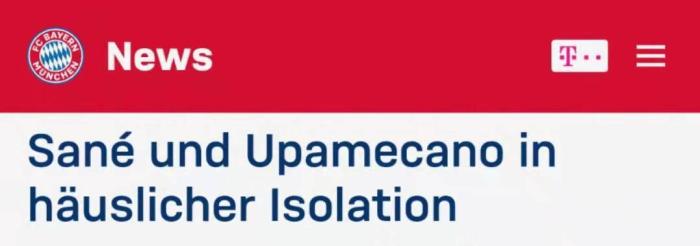 萨内和于帕梅卡诺的新冠检测结果呈阳性,球员已经隔离,目前状态良好。我们也将持续关注他们的状况,祝愿他们早日康复!