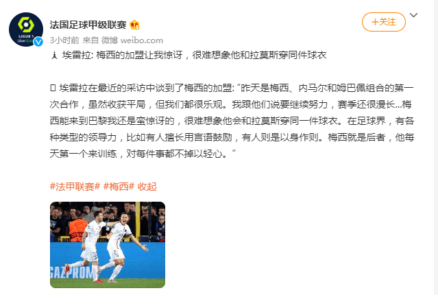 埃雷拉在最近的采访中谈到了梅西的加盟:“梅西能来到巴黎我还是蛮惊讶的,很难想象他会和拉莫斯穿同一件球衣。在足球界,有各种类型的领导力,比如有人擅长用言语鼓励,有人则是以身作则。梅西就是后者,他每天第一个来训练,对每件事都不掉以轻心。”