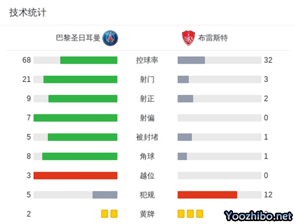 最终,巴黎3-1逆转布雷斯特。