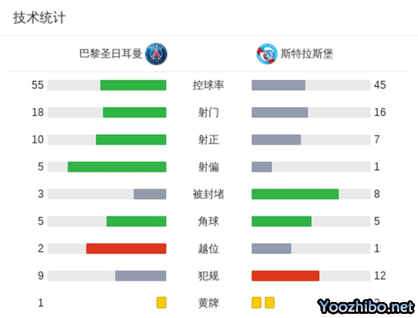 全场比赛结束,巴黎圣日耳曼4-2斯特拉斯堡!